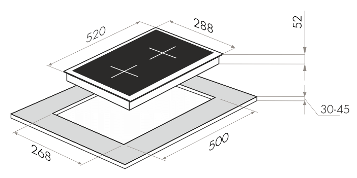 | Габариты (ВхШхГ) | 52х288х520 мм |