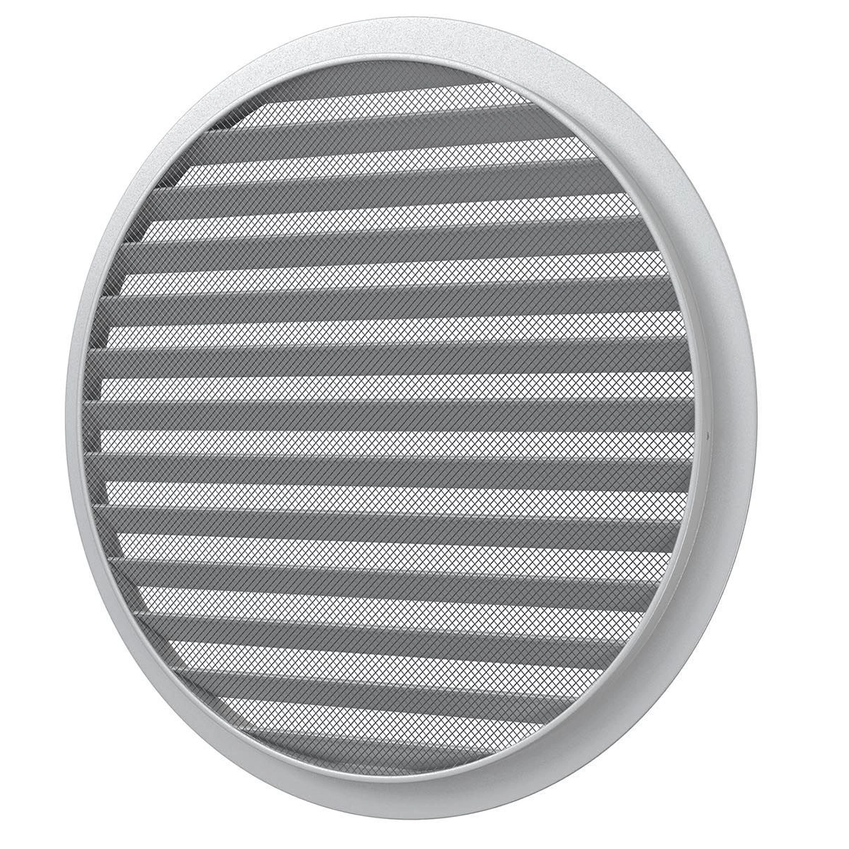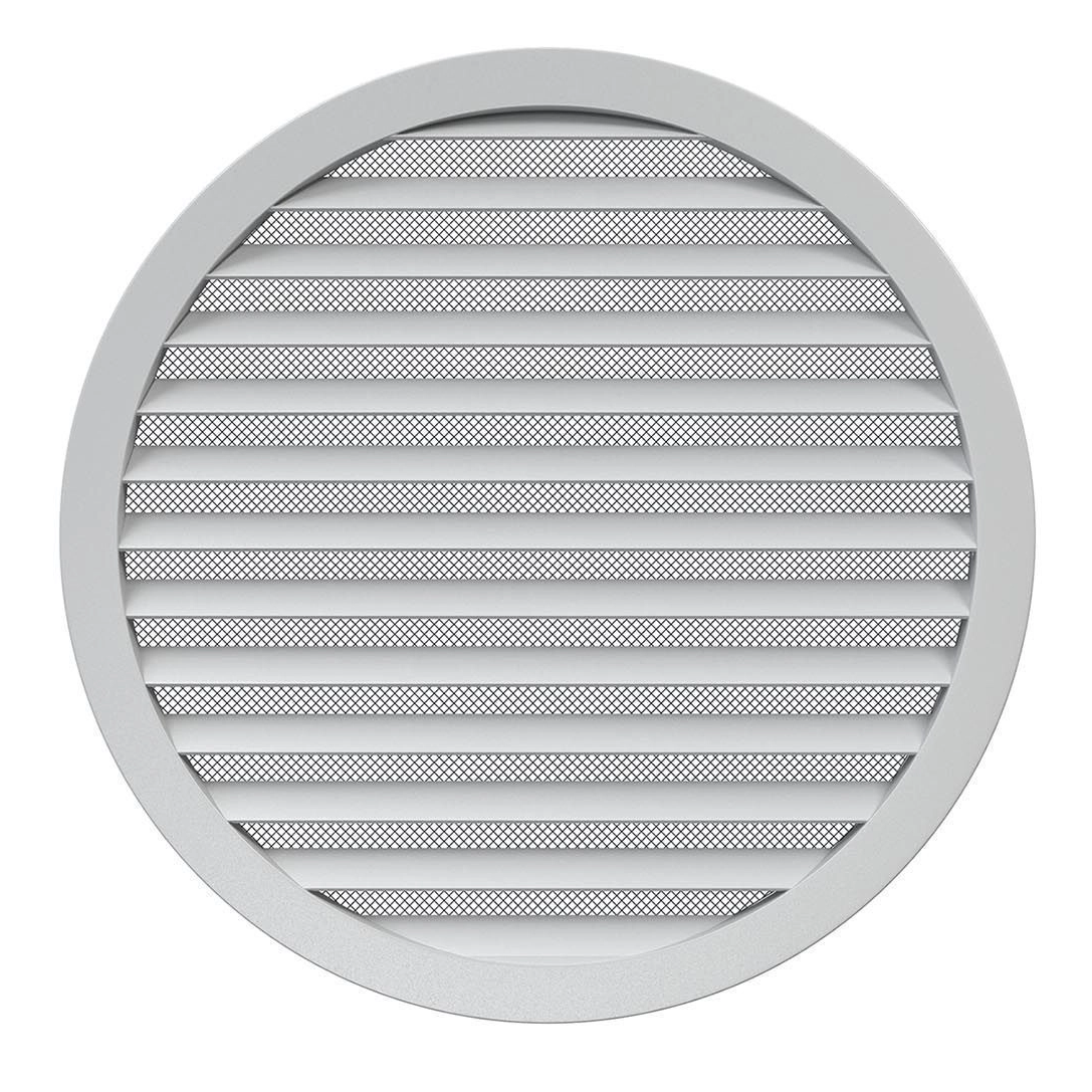 Решётка круглая металлическая вентиляционная вытяжная изготовлена из алюминия. Применяется для декоративного оформления входных и выходных отверстий каналов бытовой вентиляции. При длительном использовании на улице не теряет своих первоначальных свойств, сохраняет цвет. Обладает значительной ударопрочностью.