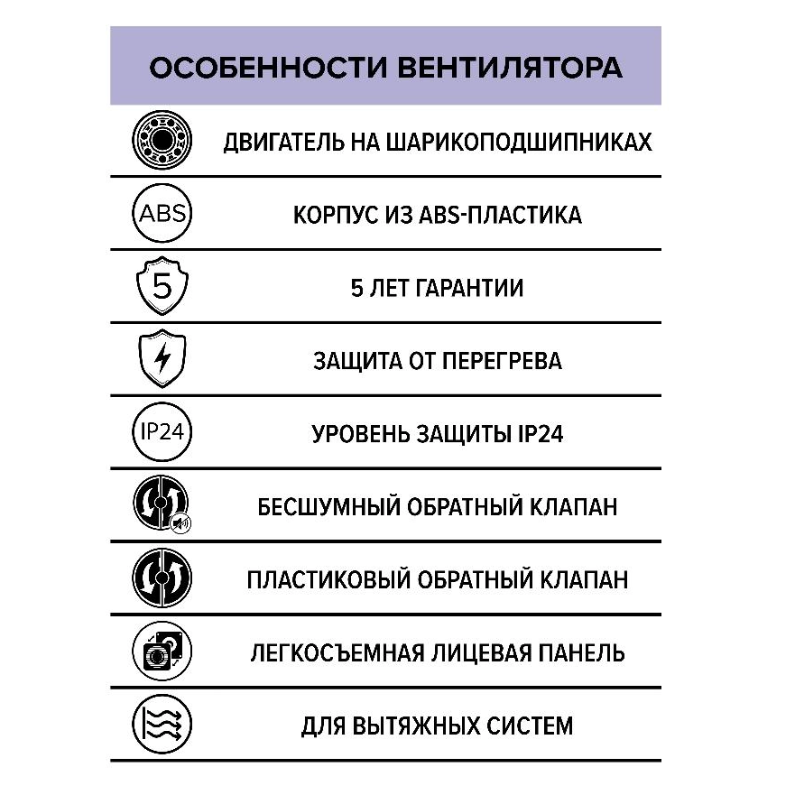 ›› Для постоянной или периодической вытяжной вентиляции санузлов, душевых, кухонь и других бытовых помещений.