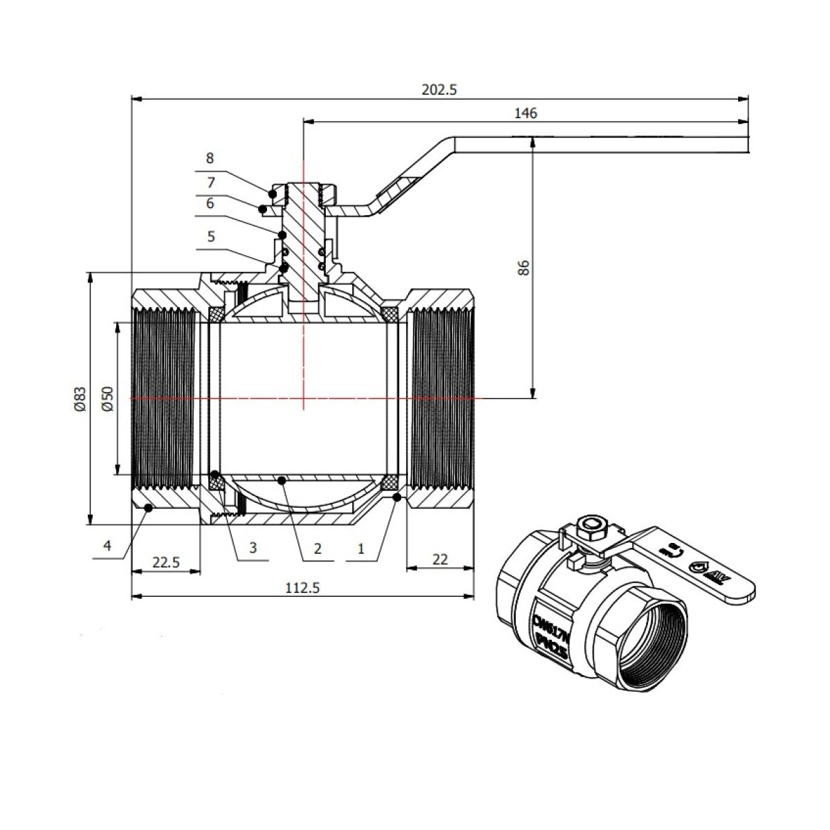 Тефлоновое (PTFE) седельное кольцо, контактирующее с шаром, выдерживает температурный режим от -25 С до 150 С.