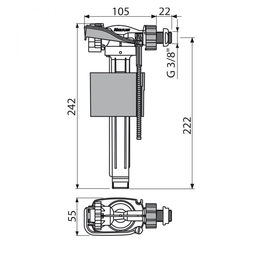 Универсальный механизм для керамического бачка. Предназначен для наполнения сливного бачка водой. Подходит для унитазов с боковой подводкой. Подходит для замены существующего механизма похожего назначения