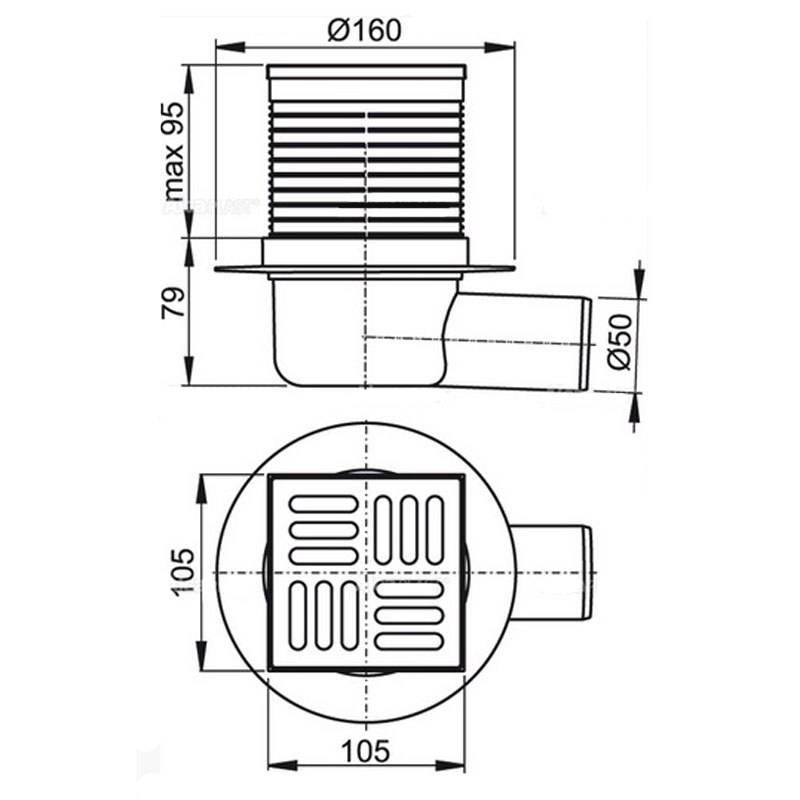 Модель трапа применяется для водоотведения внутри квартир, общественных душевых и любых отапливаемых помещений. Не предназначен для работы в холодных условиях, при температуре от нуля и ниже. Дизайн в виде квадратной решетки видимой на поверхности пола. Решетка выполнена из нержавеющей стали и покрыта дополнительным составом увеличивающим срок использования и защищающим от царапин. Размер решетки 105 мм или 10,5 см. Душевой трап, как и другие сливные трапы для душа, рассчитан на отводную канализационную трубу диаметром 50 миллиметров. Оборудован комбинированным гидрозатвором системы SMART.