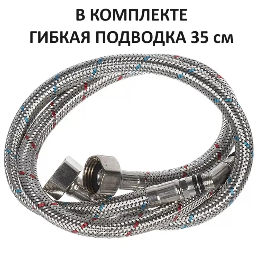 Гибкая подводка крана имеет универсальное соединение G 1/2''.